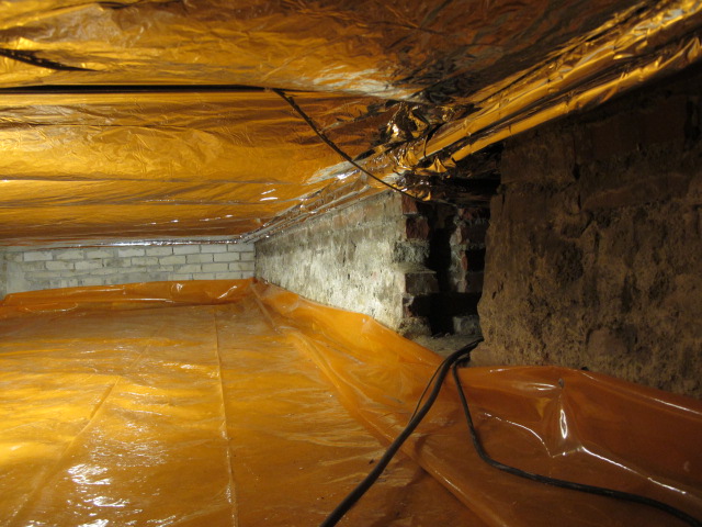 De folie voorkomt dat grondvocht kan verdampen in de kruipruimte.